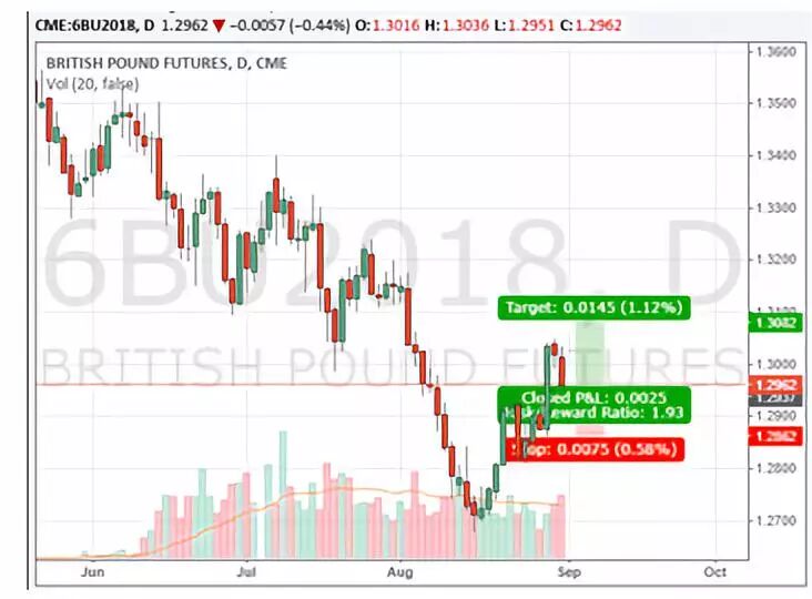 买入英镑2018年9月份到期期货合约(芝商所合约代码6BU8)。
