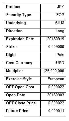买入行权价为0.009000的日元看跌期权(芝商所合约代码6JU8)。