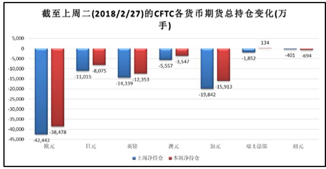 据美国商品期货委员会公布的2月27日期货市场头寸持仓报告显示,上周各货币的报告总持仓情况如下:欧元净多头变化3964万手,英镑净多头变化1986万手,日元净多头变化2940万手,加元净多头变化3929万手,瑞士法郎净多头变化355万手,澳元净多头变化2010万手,纽元净空头变化293万手。上周总持仓多空转换的货币有:瑞士法郎。除此之外,单向总持仓变动超过20%的货币有:日元,瑞士法郎,澳元,纽元。