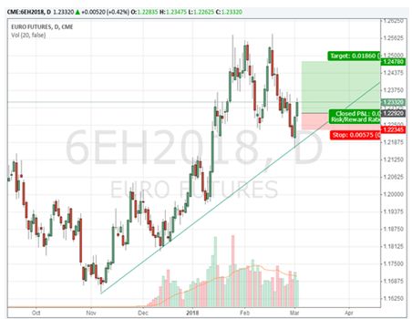 ?挂单买入欧元2018年3月份到期期货合约(芝商所合约代码6EH8)。
