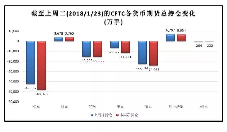 据美国商品期货委员会公布的1月16日期货市场头寸持仓报告显示,上周各货币的报告总持仓情况如下:欧元净空头变化3387万手,英镑净多头变化1270万手,日元净空头变化11679万手,加元净多头变化1776万手,瑞士法郎净空头变化2009万手,澳元净多头变化889万手,纽元净空头变化1177万手。上周总持仓多空转换的货币有:纽元。除此之外,单向总持仓变动超过20%的货币有:日元,纽元。