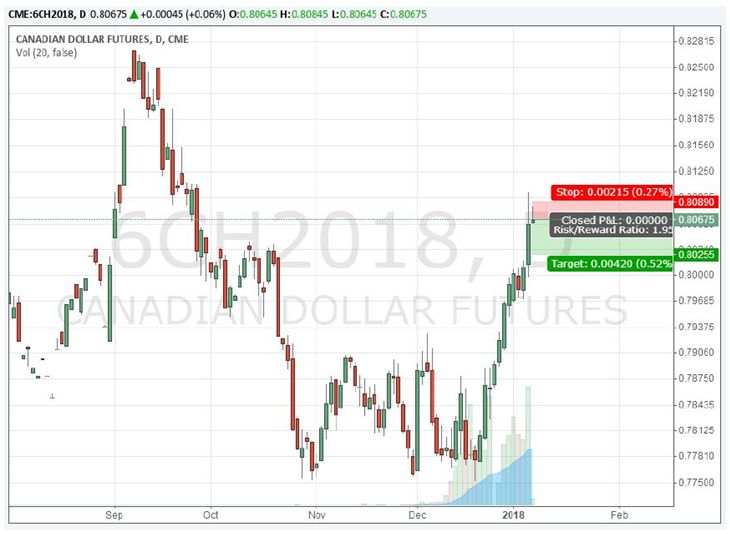 ?现价卖出加元2018年3月份到期期货合约(芝商所合约代码6CH8)。
