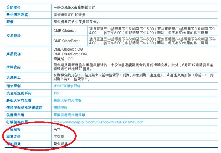芝加哥商品交易所的黄金标准期权(OG)合约