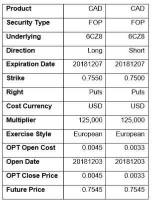 ?买入行权价为0.7500,0.7550的加元熊市价差期权组合(芝商所合约代码6CZ8)。
