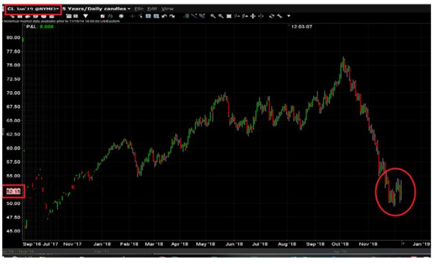 目前的 WTI原油价格是在三年之中的历史地位,(请看下面第一张图)。同时目前WTI原油期权的隐含波动率又在历史的高位(请看下面第二张图)。所以现在是卖出看跌期权以拥有WTI原油的最好机会。