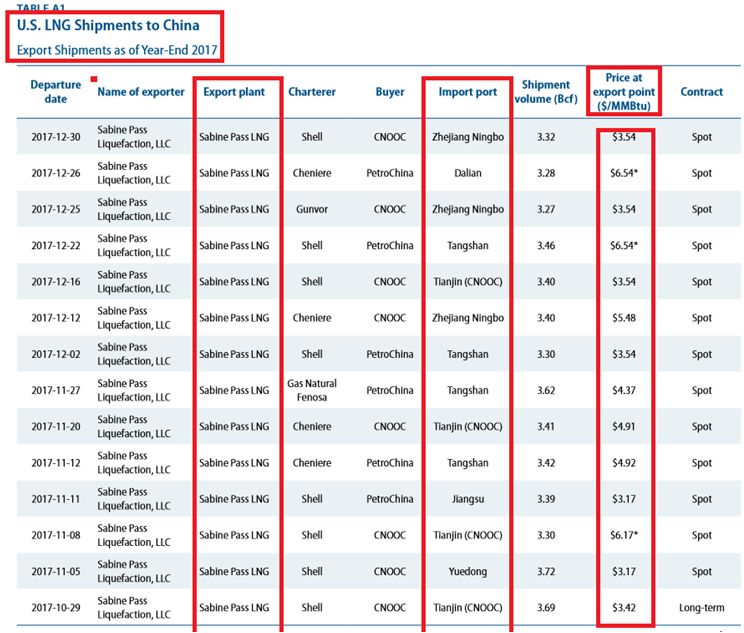 2017年年底中美之间液化天然气(LNG)交易和定价基础