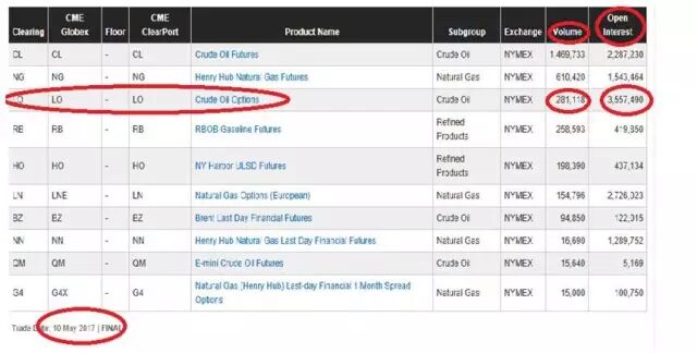 芝加哥商品交易所西德克萨斯原油 (交易代码:CL) 期权市场,是世界上最大的场内交易原油期权市场。从每天的交易量来看,西德克萨斯原油期权 (交易代码:LO) 是在芝商所所有交易的各类能源产品中名列第三。从未平仓合约来看,是在整个芝商所内所有交易的各类能源产品市场中名列第一。(附件1)