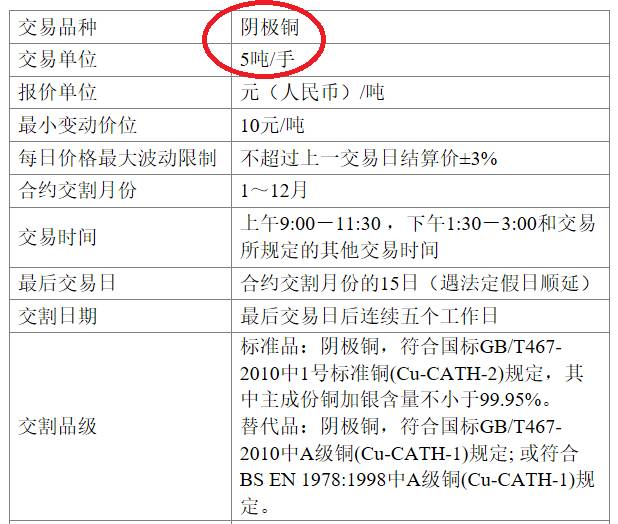 上海期货交易所精铜期货合约规格