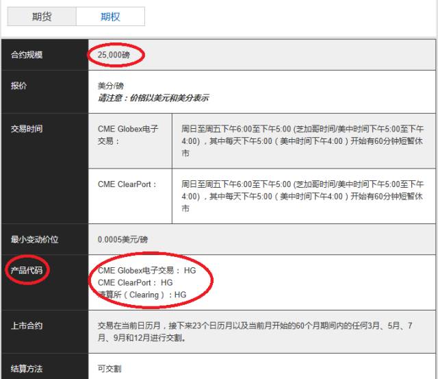 芝加哥商品交易所精铜期货 (HG) 合约规格